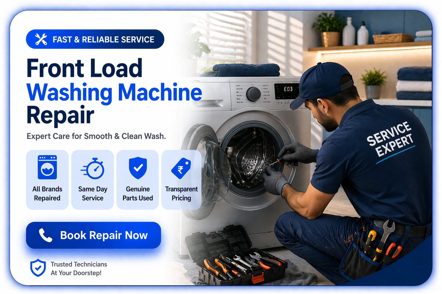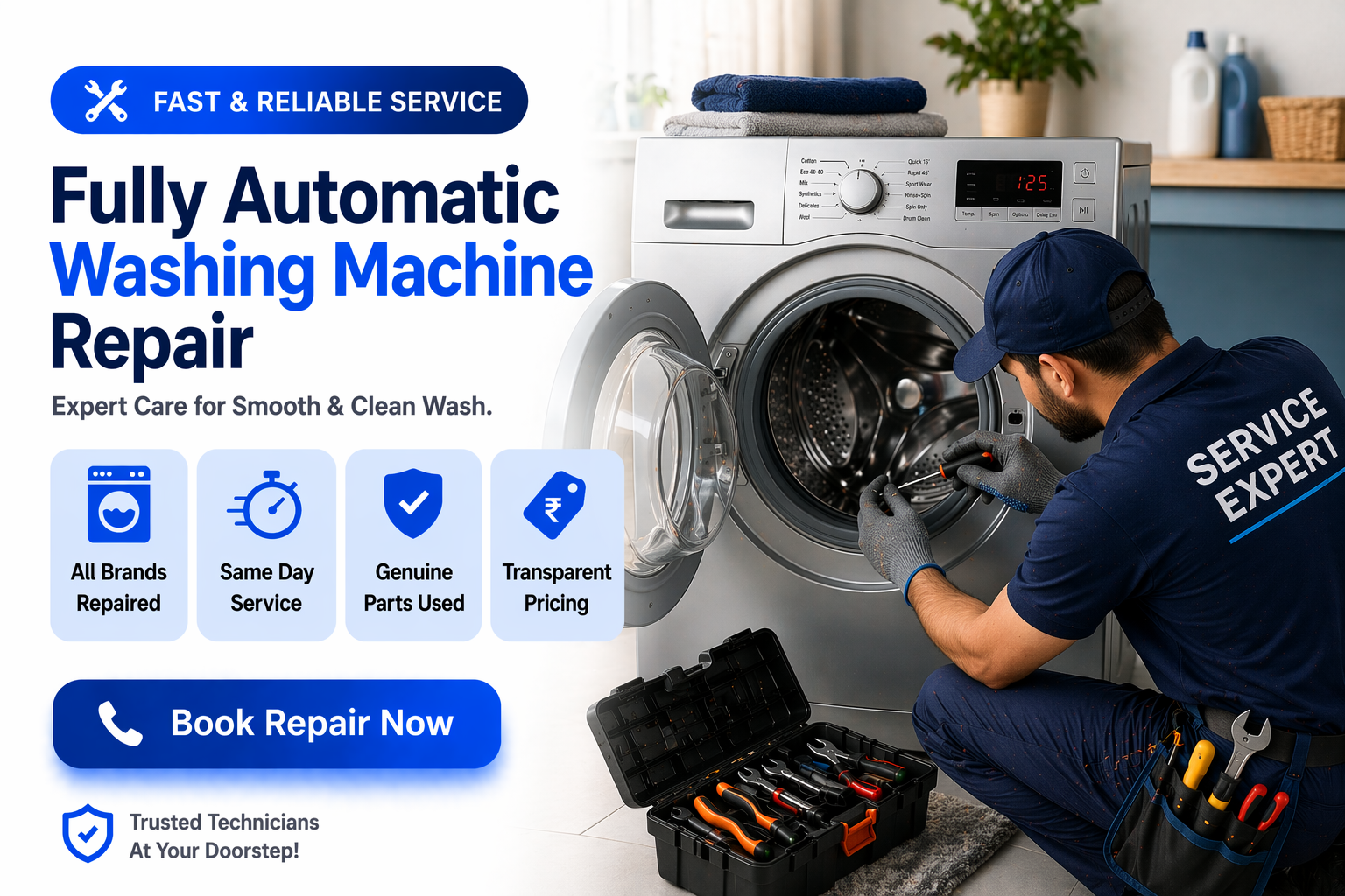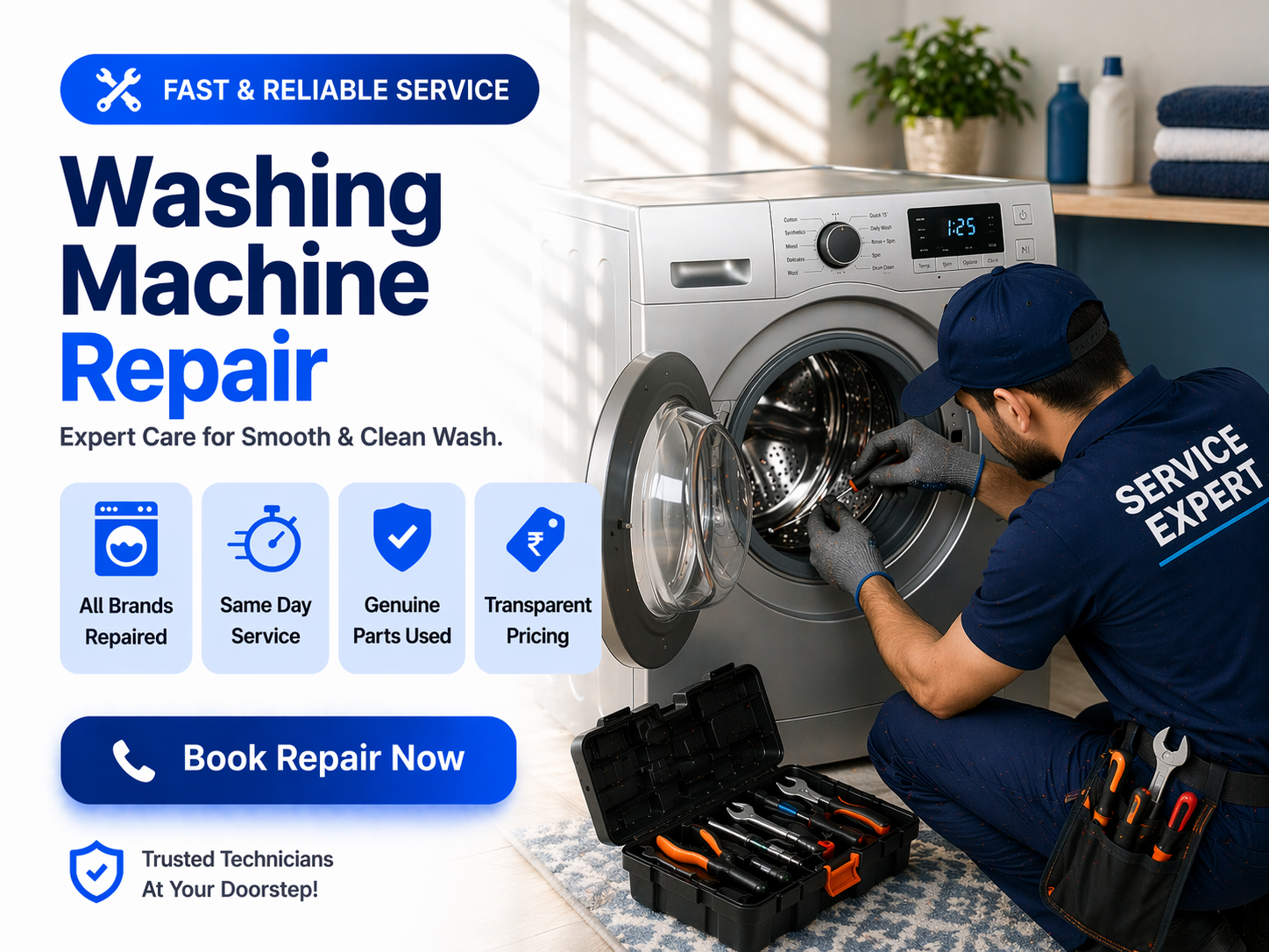 We provide fast and reliable washing machine repair services near you with certified technicians. Get same-day doorstep service for all brands and models. Facing issues like not spinning, water leakage, drum problems, or no power? Our experts quickly diagnose and fix all problems using genuine parts. Book your service today for affordable pricing, quick response, and 100% customer satisfaction.